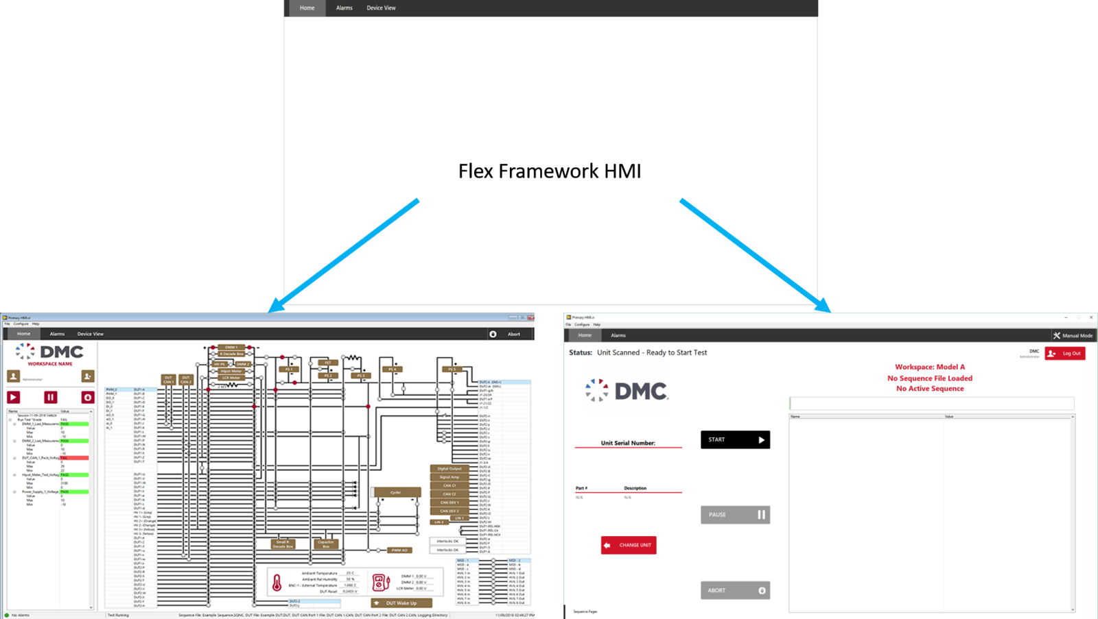 Additionally, the framework has two independent HMI templates. The user can choose to simultaneously utilize both HMI templates for a dual monitor experience, which is an excellent option for projects that need to view a large amount of data at once during a test.